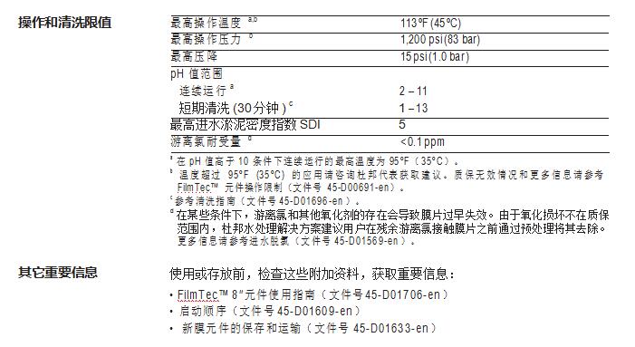 • 無(wú)需進(jìn)行氧化后處理保證了在整個(gè)運(yùn)行周期內(nèi)都能保持高性能。FilmTec™ 元 件更耐用,且能在更寬泛的 pH 值范圍(1-13)內(nèi)進(jìn)行化學(xué)清洗。