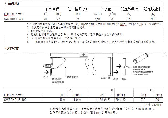 杜邦水處理解決方案提供各種優質海水反滲透(RO)元件,旨在降低海水反滲 透系統的投資成本及運營成本。FilmTec™ 膜元件結合了優異的膜性能和自動化 精密制作工藝,能提供穩定可靠的性能。