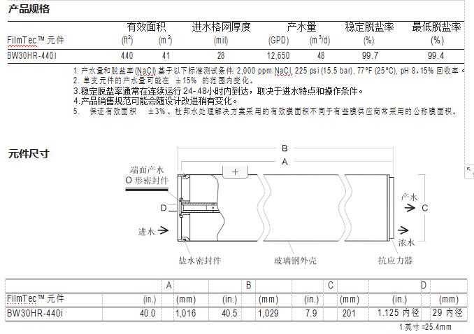 FilmTec™ BW30HR-440i 元件經(jīng)證明,具有優(yōu)異的性能: