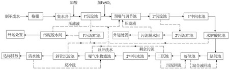 原廢水處理工藝存在以下問題:(1)無pH調節系統,無法對廢水進行加酸調節,尤其在廢水間歇排放時,有時pH可達到10~12,堿性很強,會對后續生物處理系統中微生物的呼吸作用及代謝功能產生障礙,嚴重影響生物處理系統的處理效果。(2)初沉池由于設計缺陷,沉淀時間較長,且不能及時排泥,沉淀污泥在池內停留時間較長。廢水中油脂、碎肉和皮屑等含有大量蛋白質,在長時間缺氧條件下發生氨化反應,蛋白質水解為氨氮進入廢水中,給后續的生化脫氮帶來負擔,造成出水氨氮超標。(3)二級生化處理采用氧化溝工藝,缺少缺氧段,同一溝中好氧區與缺氧區各自的體積和溶解氧濃度很難準確地控制,因此無法保證對氨氮和總氮的去除效果。(4)氧化溝溝道較長,倒傘曝氣氧利用率低,且缺少推流器,機械攪拌強度不夠,造成溝內污泥沉積,泥水混合不均,處理效果差。(5)現有工藝缺少部分深度處理設施,無法保證出水穩定達標排放。