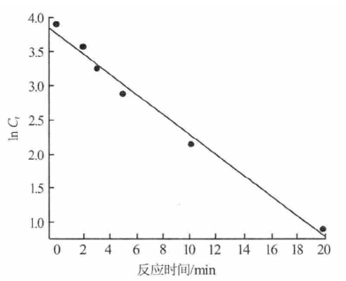 由圖 4 可知,ln Ct 與反應(yīng)時間t 呈線性關(guān)系(Ct 為反應(yīng)時間為t 時苯酚的剩余質(zhì)量濃度),斜率為 -0.147 87,基本與一級反應(yīng)動力學(xué)方程ln (Ct /C0 )= - kt 的特征相符。由此可見,K2FeO4- NaClO 聯(lián)用氧化降解苯酚的過程可以用一級反應(yīng)動力學(xué)方程描述,反應(yīng)的速率常數(shù)為0.147 87 min-1。 具體參見http://www.dowater.com更多相關(guān)技術(shù)文檔。