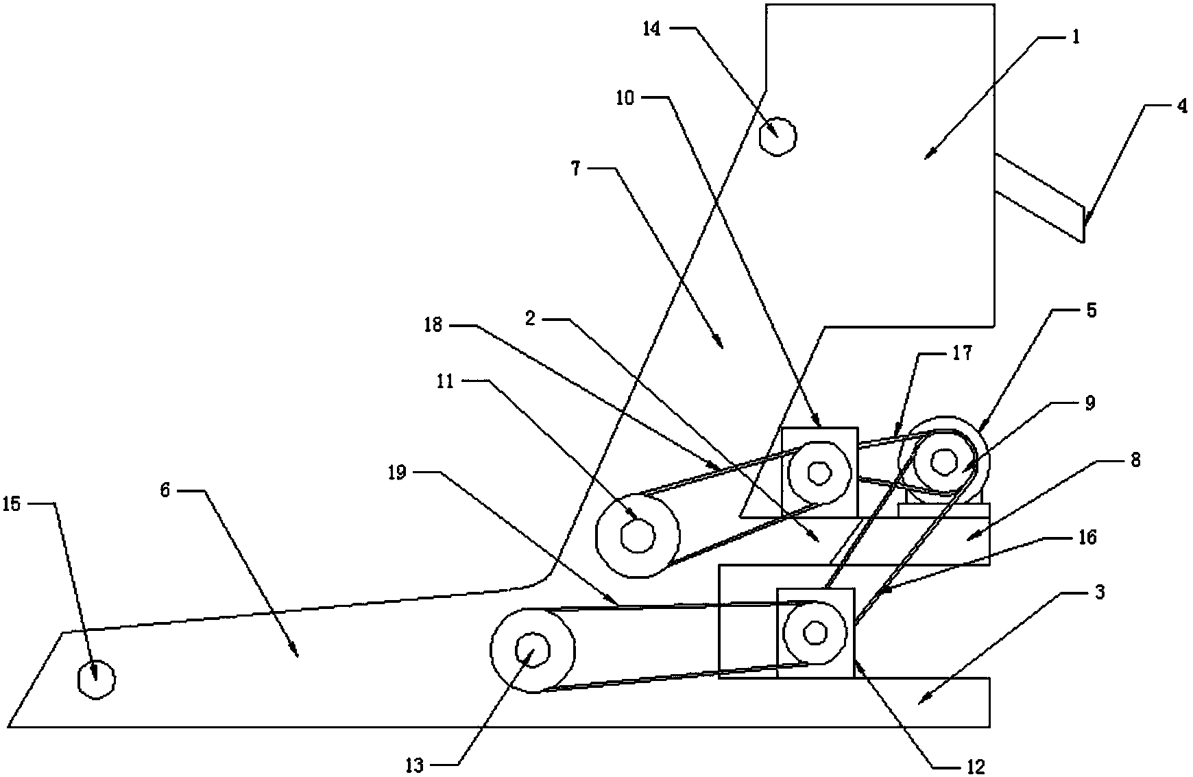 2.根據(jù)權(quán)利要求1所述的新型污水處理用格柵機,其特征在于:所述格柵機本體(1)上固定安裝有一排污滑板(4),所述連接帶(20)的頂部輸出端與所述排污滑板(4)相連。