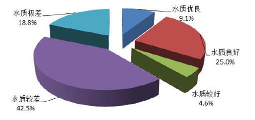 從上圖來看,水質較差、極差的監測點合計占比超過60%,水資源狀況有待進一步的治理和改善。
