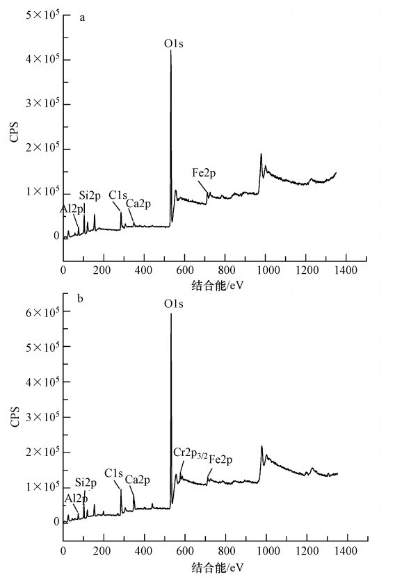 圖 4 李氏禾濕地基質吸附Cr(Ⅵ)前(a)、后(b)寬掃描XPS譜圖