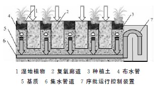 本處理工藝的主體構筑物,用于去處污水中的有機污染物、氨氮和磷。濕地床共280m2,濕地床深1m。濕地表面負荷為0.25m3/(m2·d)。