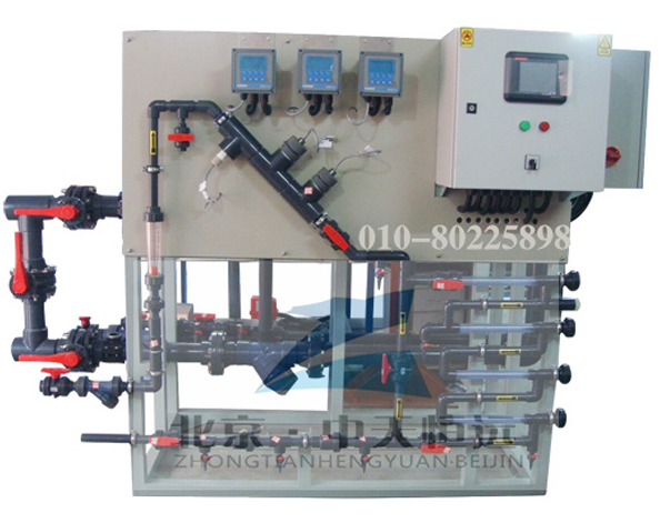 示蹤劑加藥裝置由示蹤劑儀表、PH儀表、0RP儀表、電導率儀表、控制系統(tǒng)、無線遠傳系統(tǒng)等部分組成。其工作原理是由示蹤劑儀表檢測循環(huán)水系統(tǒng)中藥劑的濃度,進行PID運算,然后自控制系統(tǒng)啟動或關閉加藥泵往循環(huán)水系統(tǒng)添加藥劑。其功能是使藥劑穩(wěn)定在一定的濃度范圍,達到保護管道不會結(jié)垢或腐蝕的趨勢。循環(huán)水系統(tǒng)進行排污或補水時,只要藥劑濃度滿足設定值,加藥泵依然不向系統(tǒng)中投加藥劑。從而節(jié)約客戶使用藥劑的成本。