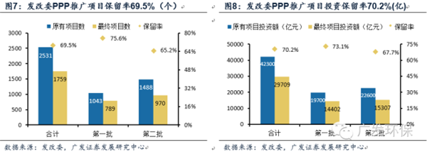 整體來看,發改委批項目數保留率75.6%,剔除退庫項目后比較終投資額1.44萬億,投資額保留率73.1%;第二批項目數保留率65.2%,剔除退庫項目后比較終投資額1.53萬億,投資額保留率67.7%。