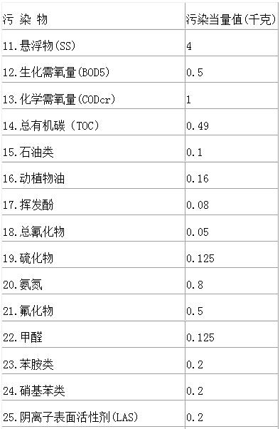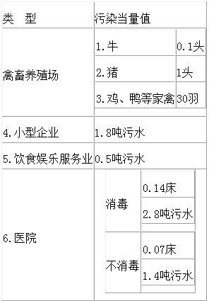 1.本表僅適用于計算無法進行實際監測或者物料衡算的禽畜養殖業、小型企業和第三產業等小型排污者的水污染物污染當量數。