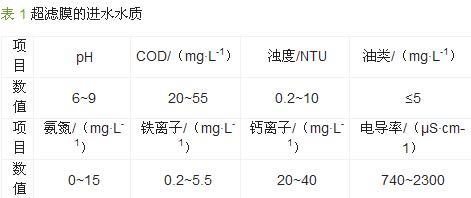 超濾膜進水水質見表1。