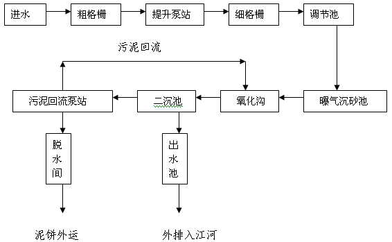 赤坎水質凈化廠是湛江市的重點工程,一期工程日處理量為5萬噸/天,主要生物處理工藝采用的是“A2/O微曝氣氧化溝”法。該廠的處理工藝流程如下: