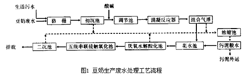 處理水量:300 m3/d,其中豆奶生產(chǎn)廢水250 m3/d,生活污水 50 m3/d。