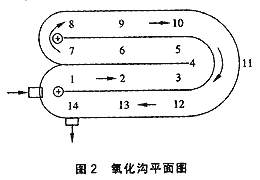 表2 穩(wěn)定運(yùn)行時(shí)氧化溝內(nèi)DO分布 mg/L