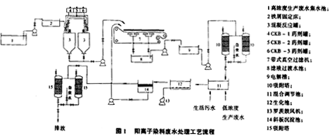 根據實驗研【水處理技術】究,采用將高濃度陽離子染料生產廢水經電解、吸附工藝預處理后,再與低濃度生產廢水、生活污水混合,進行生物接觸氧化、吸附處理陽離子染料生產廢水,實際運行結果表明:總色度去除率達到99.99%,總CODcr去除率達到99.8%以上。出水各項指標均達到污水綜合排放一級標準。