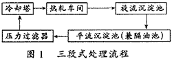 目前,國內熱軋車間濁環水處理流程大部分為三段式,并采用機械設備除油。其流程見圖1。