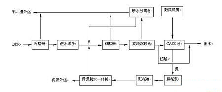 技術特點與優勢: ● 投資費用低 改良型氧化溝工藝采用微孔曝氣(或大功率機械曝氣)與機械推流方式配合運行,可以使氧化溝設計有效水深達到 5.0米以上,占地面積大幅減小,投資費用大幅降低。 ● 運行費用低 改良型氧化溝工藝采用高效曝氣方式,工藝根據進水水質地不同可調節回流污泥分配,可大幅節省設備運行費用,從而降低運行費用。 ● 運行管理方便 改良型氧化溝工藝成熟,運行穩定,常規管理方便。 CASS 工藝 CASS(Cyclic Activated S1udge System) 工藝是普通 SBR 工藝的一種改進型工藝。 CASS 反應池由預反應區和主反應區組成,預反應區控制在缺氧狀態,因此,提高了對難降解有機物的去除效果提高。 CASS 進水是連續的,因此進水管道上 無電動控制閥 ,單個池子可獨立運行 。 CASS 工藝可以根據脫氮除磷效果的要求,將預反應區分成厭氧、缺氧兩段。在工藝運行過程中,可根據實際污泥性狀和除磷要求選擇回流裝置的開啟。 CASS 工藝處理流程簡圖如下: ![]()