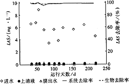 以上結(jié)果說明LAS的去除主要靠生物反應(yīng)池中微生物的分解作用,膜對LAS的截留作用很小。