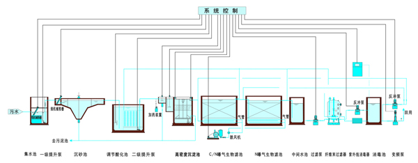 生物曝氣濾池(Biological Aerated Filter)簡稱BAF,是80年代末在歐美發展起來的一種新型生物膜法污水處理工藝。該工藝具有去除SS、COD、BOD、硝化、脫氮、除磷、去除AOX(有害物質)的作用,其特點是集生物氧化和截留懸浮固體與一體,節省了后續沉淀池(二沉池),其容積負荷、水力負荷大,水力停留時間短,所需基建投資少,出水水質好:運行能耗低,運行費用省。